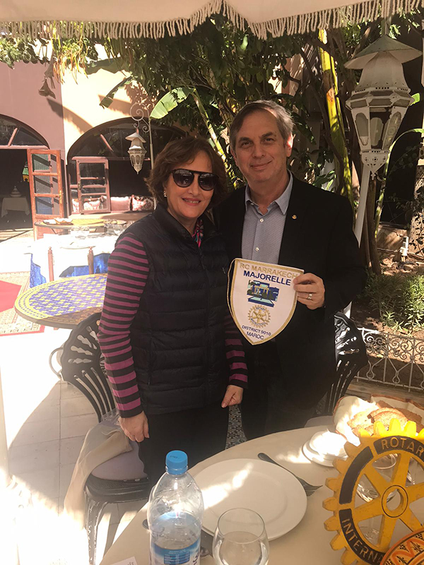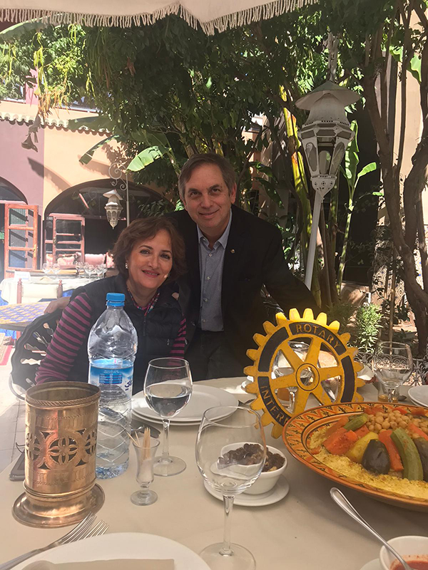 Scott Schwartz of the Rotary Club of Redwood City, with Marrakesh Rotarienne Nourat Amine El Jazouli, at her restaurant El Baraka (the BEST couscous!).