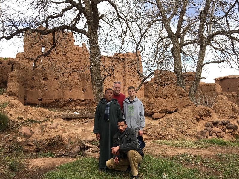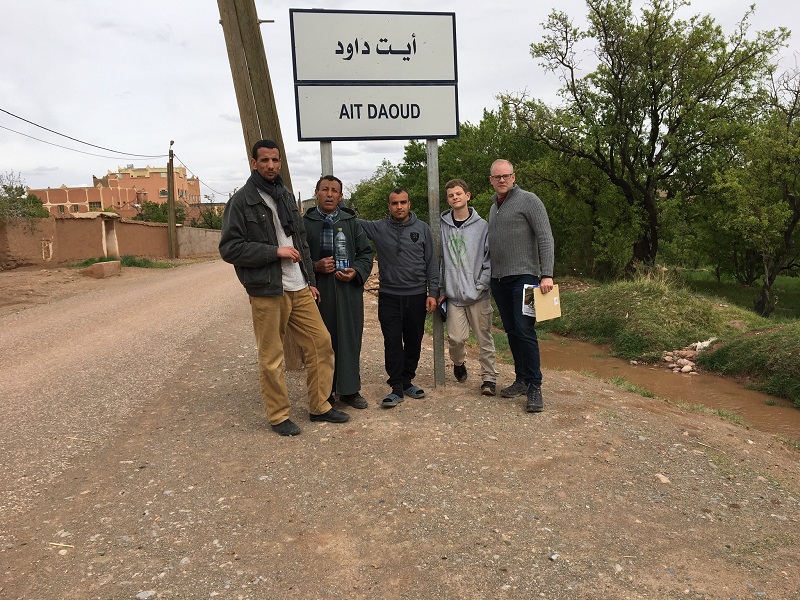 Crossing through Ait Daoud to specify the location of the doors along the aqueduct. Old kasbah in the background.